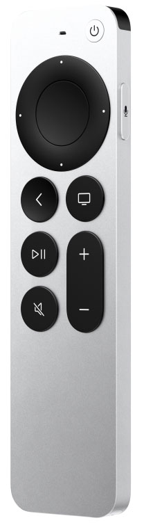 A touch-enabled clickpad. Easily swipe through episodes, scenes, or frames with an intuitive circular movement. Turn your TV on or off, change the input to Apple TV 4K, and control the volume.