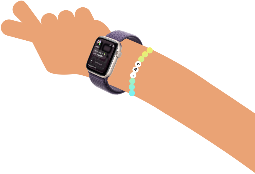 Text with just a tap, a swipe, or dictation in the Messages app. And when you add personalized backgrounds to your chats on iPhone, you’ll see them on Apple Watch, too — adding even more personality to the group chat.