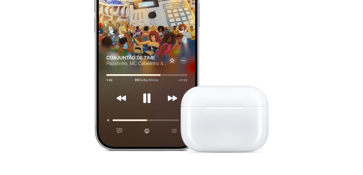 aproxime os AirPods Pro 3 do iPhone e siga as instruções que aparecem na tela. Use o Pareamento Dinâmico para conectar seus AirPods automaticamente ao aparelho que está ouvindo. Você só precisa apertar o play24.