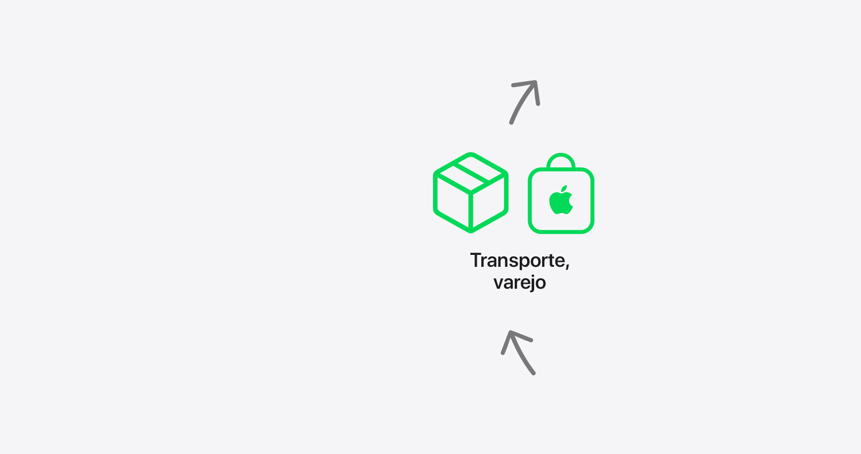 Embalagem e transporte. Por meio dos nossos fornecedores, conseguimos entregar produtos Apple em todo o mundo, incluindo em nossas lojas e diretamente aos consumidores.