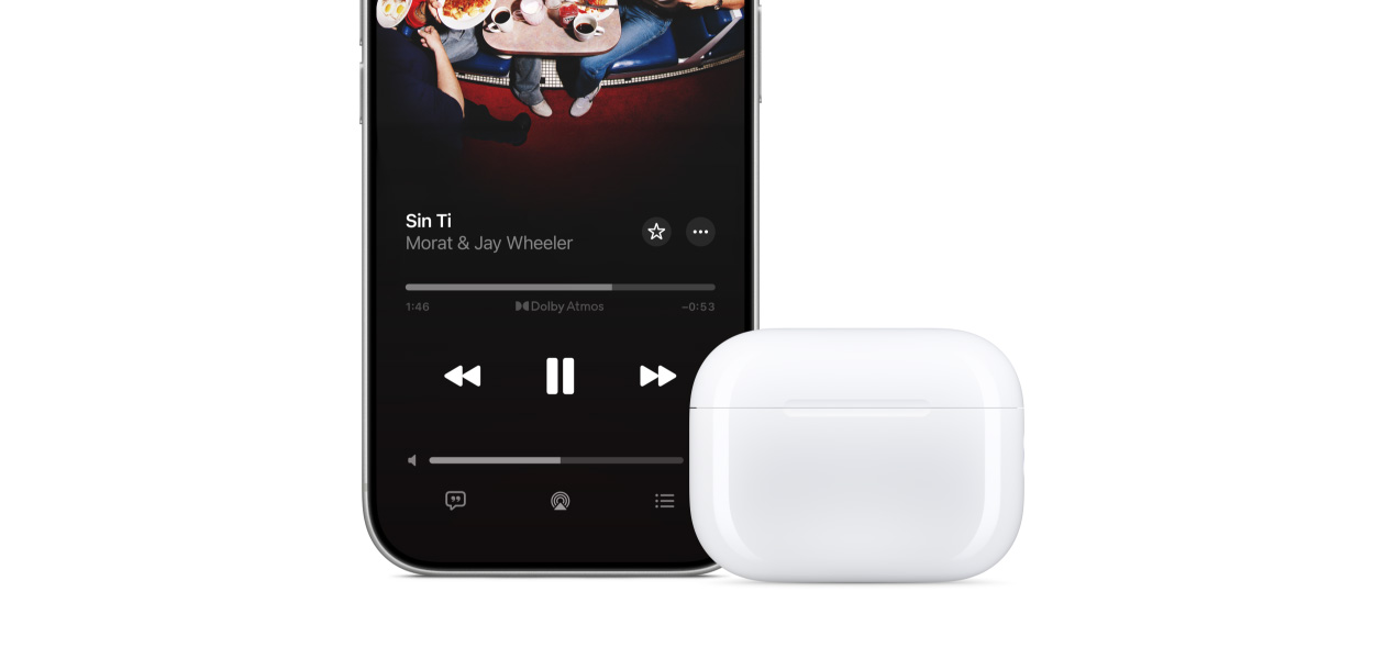 sólo tienes que ubicarlos junto a tu iPhone y seguir las instrucciones en pantalla. Usa Cambio Automático para que tus AirPods se conecten de inmediato a cualquier dispositivo en el que quieras escuchar. Sólo tienes que presionar reproducir.22