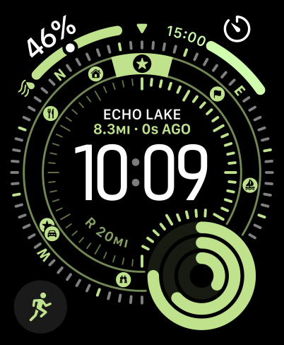Třeba si vyznač aktuální polohu nebo ulož tábořiště a začátek stezky. Body mobilního spojení ti mezitím automaticky označují místa, kde měly hodinky naposledy signál.