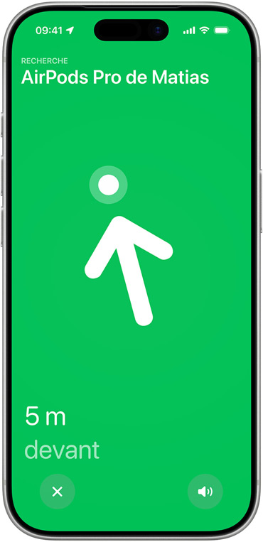 Repérez l’endroit précis où vous avez laissé vos AirPods Pro. La technologie Ultra Wideband nouvelle génération du Boîtier de charge étend de 1,5x la portée de Localisation précise9. Et avec le haut-parleur intégré au boîtier, vous pourrez retrouver vos AirPods, même s’ils sont tout au fond du canapé.