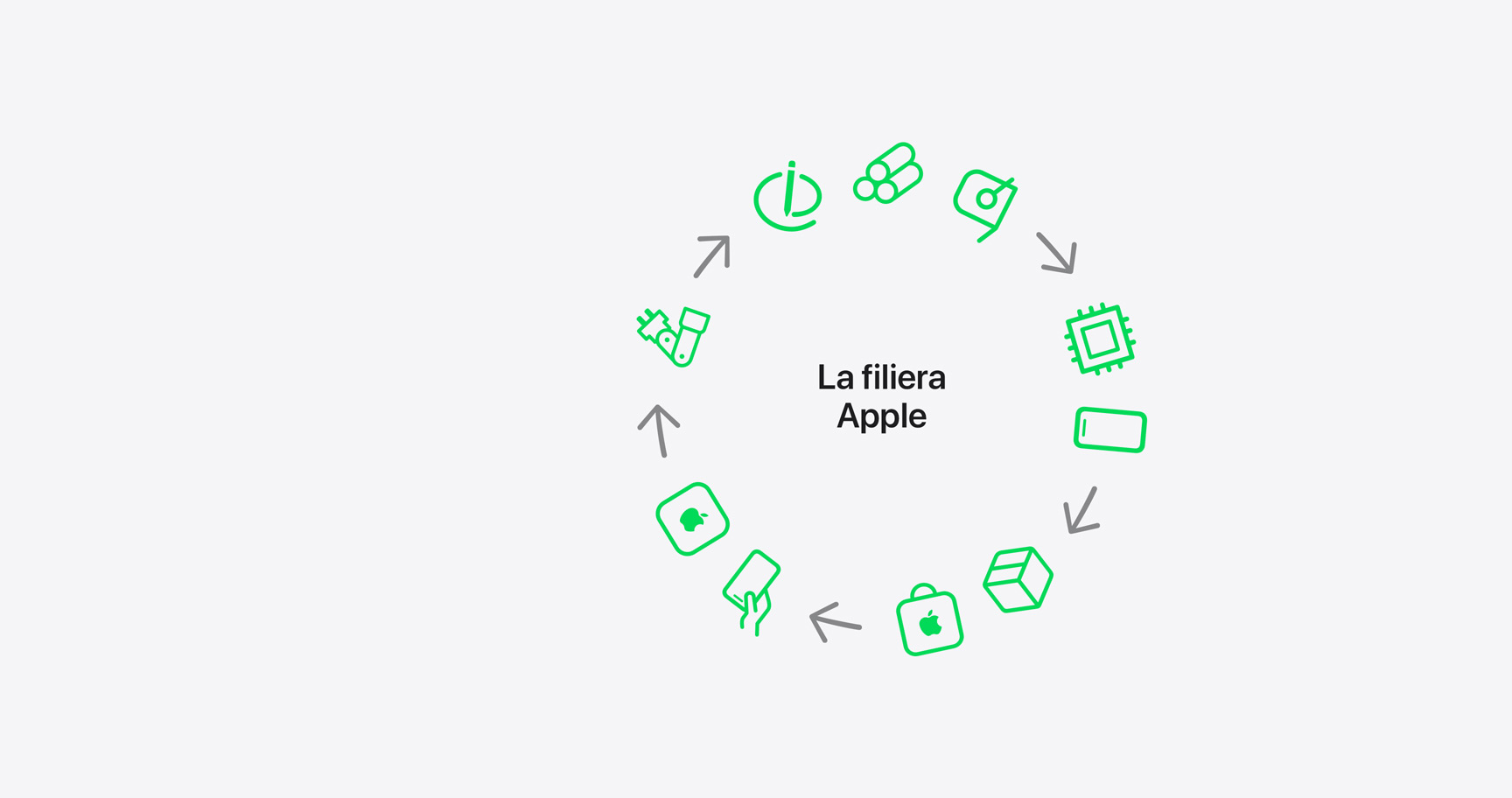 La nostra filiera comprende migliaia di stabilimenti in oltre 60 Paesi. I fornitori supportano ogni fase del ciclo di vita dei prodotti Apple, seguendo i nostri rigorosi requisiti a livello globale. È così che diamo una spinta al nostro progresso, e anche a quello dei nostri partner e del settore intero.