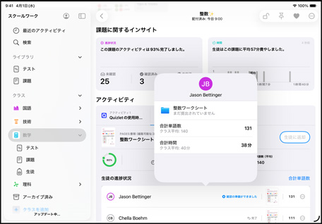 スクールワークとクラスルームで、 生徒 一人