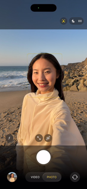 La nouvelle caméra avant vous donne plus de flexibilité pour cadrer vos photos et vidéos – et bien plus encore. Touchez pour élargir le champ de vision et basculer du mode portrait au mode paysage sans bouger votre iPhone. Et quand d’autres personnes se joignent à votre selfie, le champ de vision s’adapte pour que tout le monde entre dans le cadre.