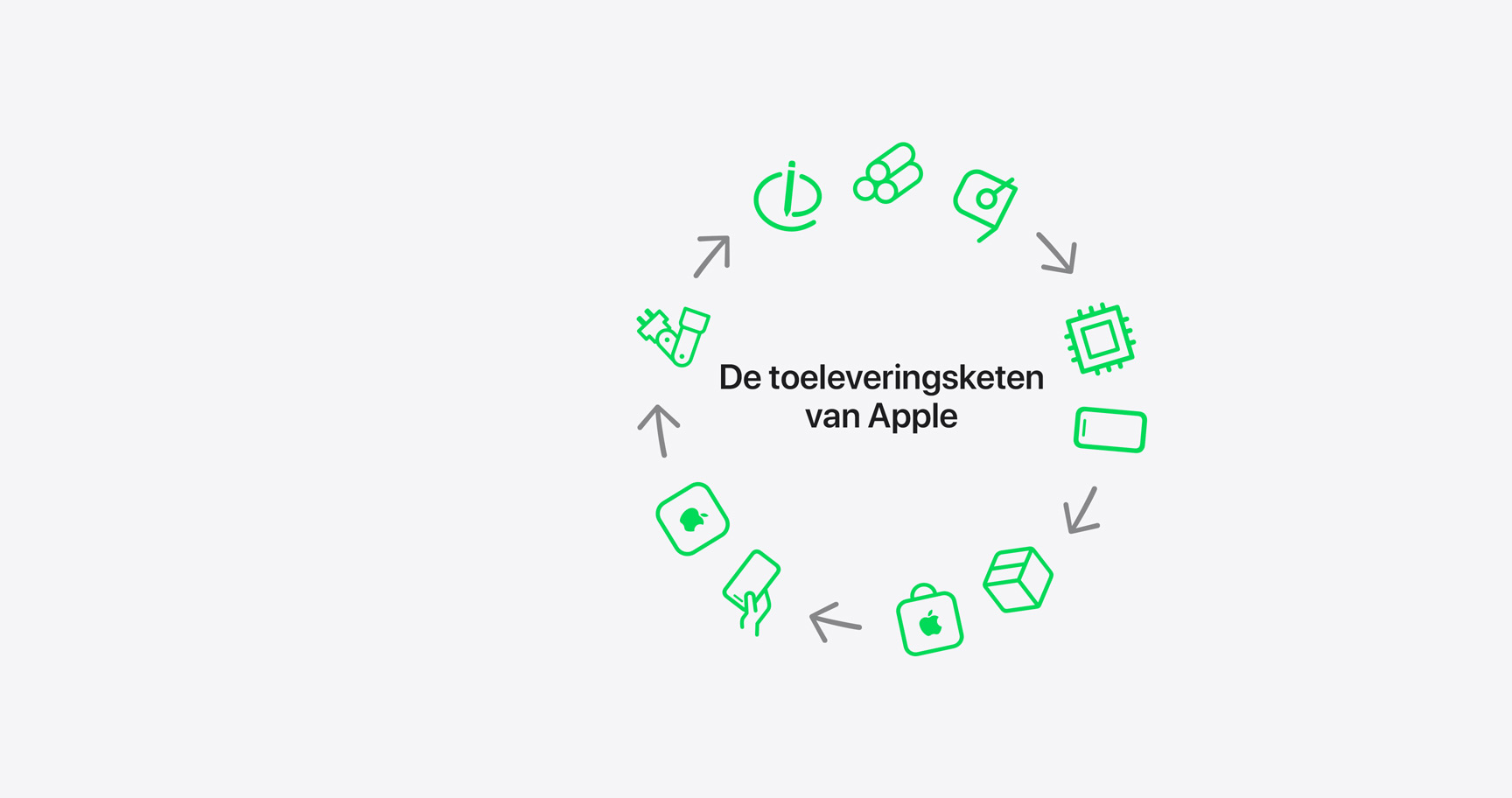 Onze toeleveringsketen bestaat uit duizenden fabrieken in meer dan 60 landen. Toeleveranciers zijn betrokken bij elke fase van de levenscyclus van Apple producten, en we passen onze strenge vereisten wereldwijd toe om onze partners, onszelf en de branche vooruit te helpen.
