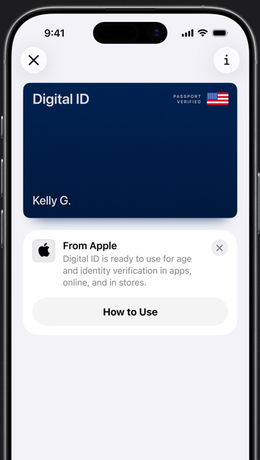 • Digital ID is not a government-issued passport. It cannot be used in situations where your government-issued passport is required, such as to cross borders. It is an ID credential issued by Apple in which the data is obtained from an authentic government-issued passport.